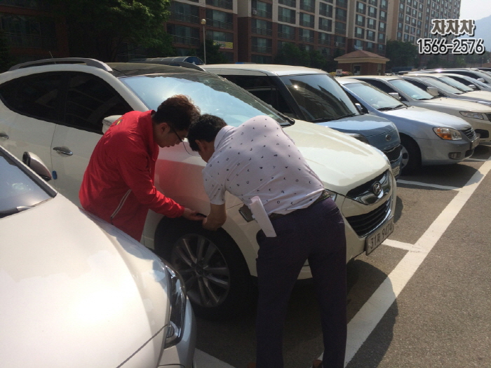 일주일 가량 통화를 하고 견적을 내드리고 판매일이 결정되어 아침일찍 김천으로 차량 매입하러 이동하였습니다. 부천 KB차차차에서 김천까지 4시간 정도 걸리네요 아침 6시반에 출발했는데...^^ 투싼ix 풀옵션 차량이라 하는데 저희가 제일 걱정인게 멀리서 차량 매입을 위해 출장을 가면 꼭 옵션이 틀리거나 사고가 있거나 차량 상태가 나뻐서 전화상 견적과 틀리때가 있습니다. 판매시 숨김없이 상세하게 설명해주시면 감사하겠습니다. ^^